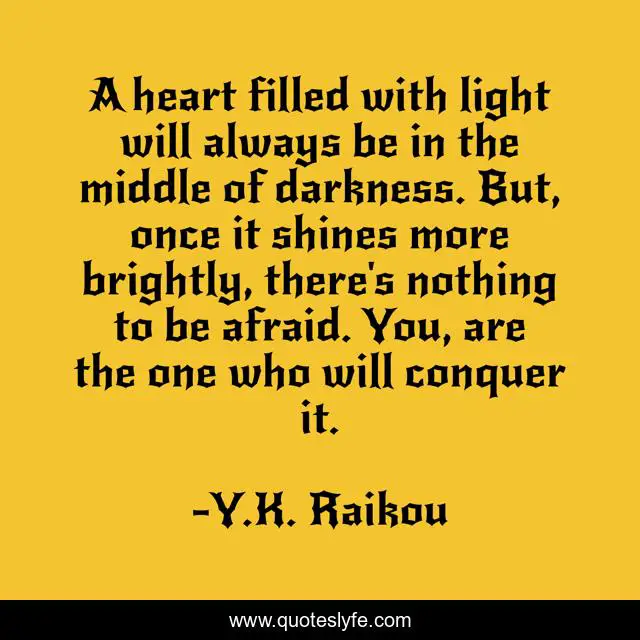 A heart filled with light will always be in the middle of darkness. But, once it shines more brightly, there's nothing to be afraid. You, are the one who will conquer it.