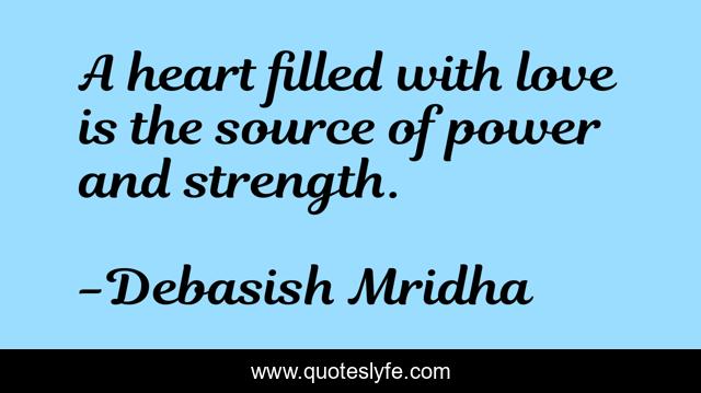 This page presents the quote "A heart filled with love is the source of power and strength.". Author of this quote is Debasish Mridha. This quote is about heart, debasish, love, mridha, philosophy, debasish-mridha, source-of-power-and-strength, affection,.