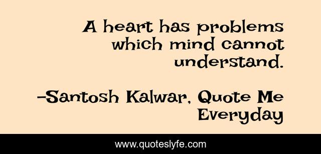 This page presents the quote "A heart has problems which mind cannot understand.". Author of this quote is Santosh Kalwar, Quote Me Everyday. This quote is about heart, life, mind, problems,.