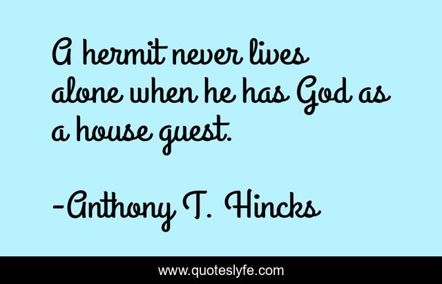 This page presents the quote "A hermit never lives alone when he has God as a house guest.". Author of this quote is Anthony T. Hincks. This quote is about philoosphy, guest, god, lives, alone, home, lives-alone, hermit,.