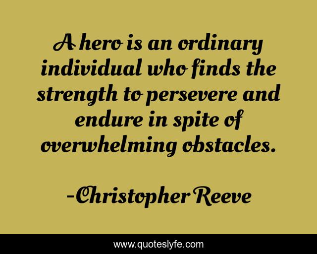 This page presents the quote "A hero is an ordinary individual who finds the strength to persevere and endure in spite of overwhelming obstacles.". Author of this quote is Christopher Reeve. This quote is about obstacles, hero, endure,.