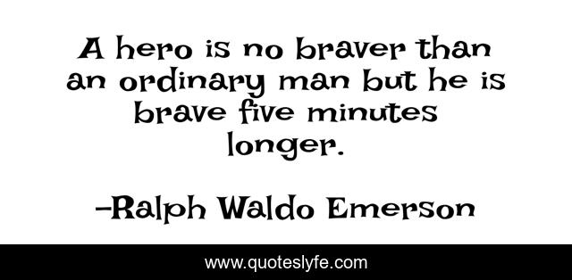 This page presents the quote "A hero is no braver than an ordinary man but he is brave five minutes longer.". Author of this quote is Ralph Waldo Emerson. This quote is about heroes, heroism,.