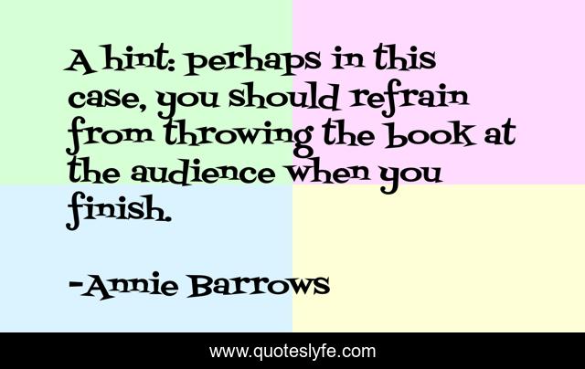 This page presents the quote "A hint: perhaps in this case, you should refrain from throwing the book at the audience when you finish.". Author of this quote is Annie Barrows. This quote is about book, humor, authors,.