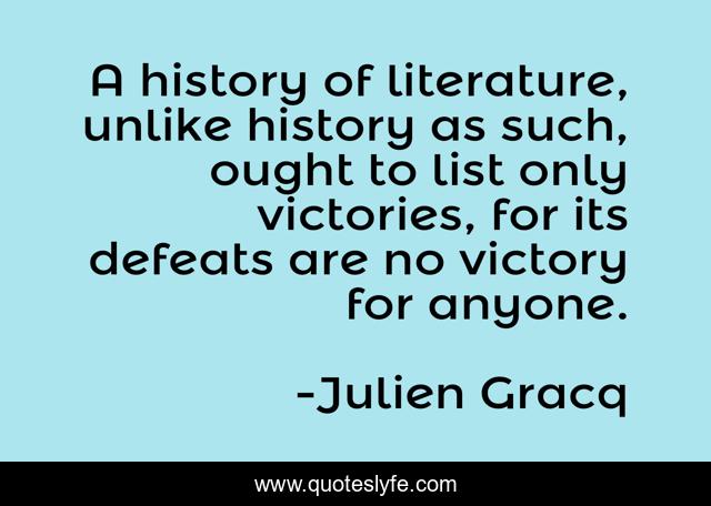 This page presents the quote "A history of literature, unlike history as such, ought to list only victories, for its defeats are no victory for anyone.". Author of this quote is Julien Gracq. .
