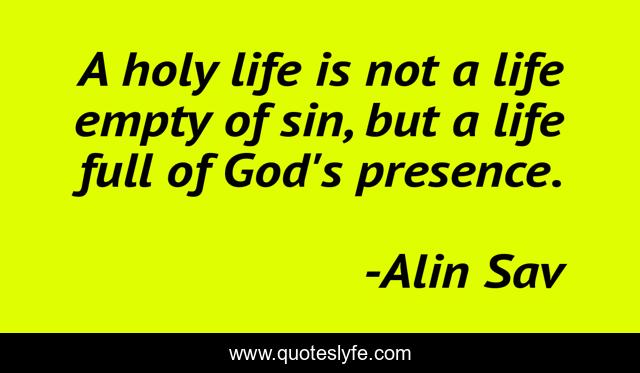 This page presents the quote "A holy life is not a life empty of sin, but a life full of God's presence.". Author of this quote is Alin Sav. This quote is about spiritual, philosophy, church,.