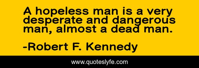 This page presents the quote "A hopeless man is a very desperate and dangerous man, almost a dead man.". Author of this quote is Robert F. Kennedy. This quote is about despair, inspiration,.