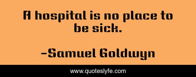 This page presents the quote "A hospital is no place to be sick.". Author of this quote is Samuel Goldwyn. This quote is about hospital, place, sick,.