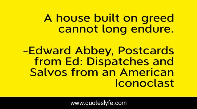 "Edward Abbey, Postcards from Ed: Dispatches and Salvos from an American Iconoclast Quotes." Quoteslyfe.com, 2025. Fri. 05 Dec. 2025. <https://www.quoteslyfe.com/quote/A-house-built-on-greed-cannot-long-226845>.