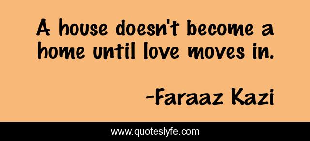 This page presents the quote "A house doesn't become a home until love moves in.". Author of this quote is Faraaz Kazi. This quote is about love, house, feelings, romance, home, house-rules, affection,.