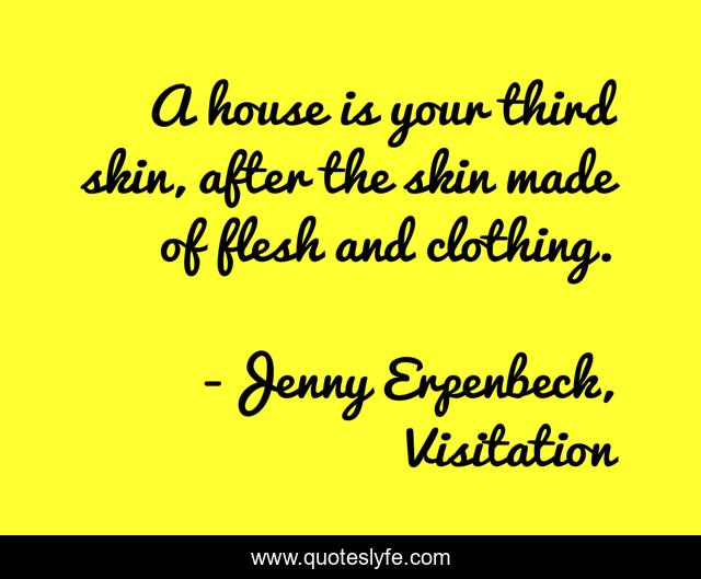 "Jenny Erpenbeck, Visitation Quotes." Quoteslyfe.com, 2025. Sat. 06 Dec. 2025. <https://www.quoteslyfe.com/quote/A-house-is-your-third-skin-after-182578>.