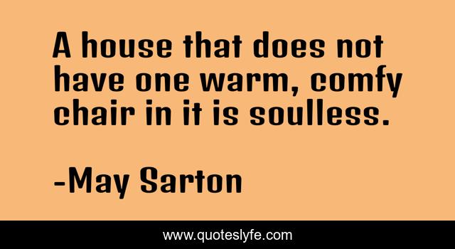 This page presents the quote "A house that does not have one warm, comfy chair in it is soulless.". Author of this quote is May Sarton. This quote is about house, soulless,.
