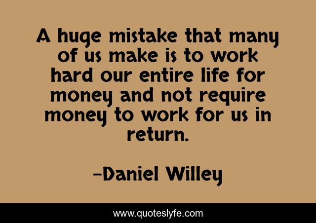 This page presents the quote "A huge mistake that many of us make is to work hard our entire life for money and not require money to work for us in return.". Author of this quote is Daniel Willey. This quote is about life, financial, finance, hard-work, money, require, work, requirement, return,.