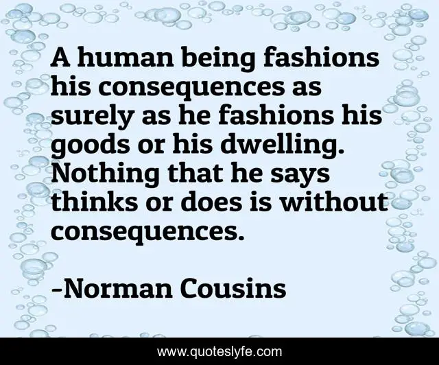 "Norman Cousins Quotes." Quoteslyfe.com, 2025. Sat. 06 Dec. 2025. <https://www.quoteslyfe.com/quote/A-human-being-fashions-his-consequences-as-273393>.