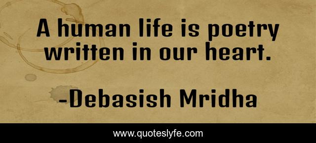 This page presents the quote "A human life is poetry written in our heart.". Author of this quote is Debasish Mridha. This quote is about debasish, human-life, mridha, philosophy, debasish-mridha, poetry-in-our-heart,.