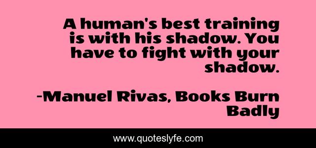 This page presents the quote "A human's best training is with his shadow. You have to fight with your shadow.". Author of this quote is Manuel Rivas, Books Burn Badly. .