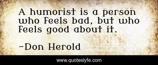 This page presents the quote "A humorist is a person who feels bad, but who feels good about it.". Author of this quote is Don Herold. This quote is about person, bad, good,.