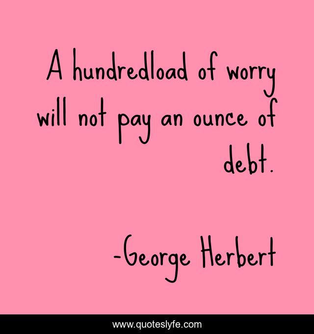 "George Herbert Quotes." Quoteslyfe.com, 2025. Sat. 06 Dec. 2025. <https://www.quoteslyfe.com/quote/A-hundredload-of-worry-will-not-pay-279322>.