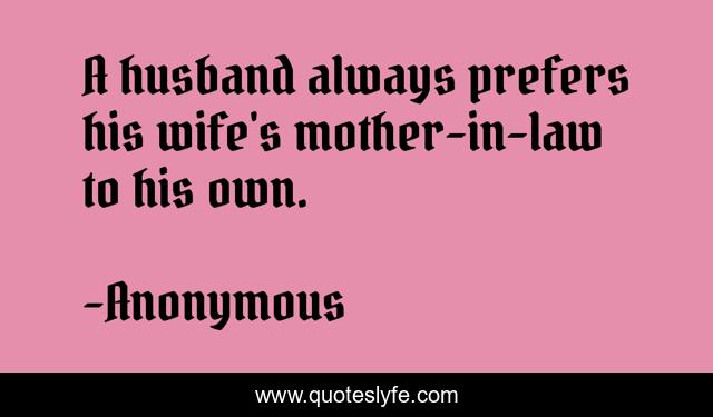 This page presents the quote "A husband always prefers his wife's mother-in-law to his own.". Author of this quote is Anonymous. .