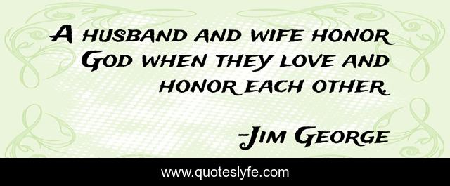 This page presents the quote "A husband and wife honor God when they love and honor each other.". Author of this quote is Jim George. This quote is about faith, christian, wife, god, bless, marriage, husband, cherish, love,.