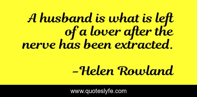 This page presents the quote "A husband is what is left of a lover after the nerve has been extracted.". Author of this quote is Helen Rowland. .