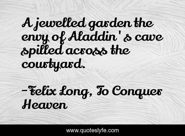 "Felix Long, To Conquer Heaven Quotes." Quoteslyfe.com, 2025. Sat. 06 Dec. 2025. <https://www.quoteslyfe.com/quote/A-jewelled-garden-the-envy-of-Aladdin-20184>.