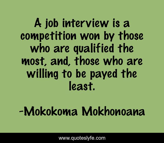"Mokokoma Mokhonoana Quotes." Quoteslyfe.com, 2025. Fri. 05 Dec. 2025. <https://www.quoteslyfe.com/quote/A-job-interview-is-a-competition-won-197884>.