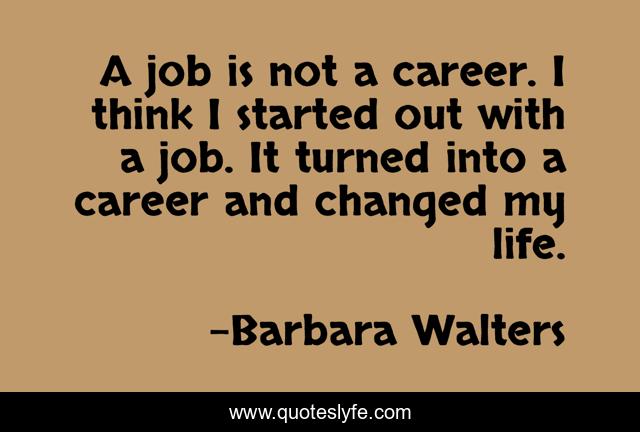 This page presents the quote "A job is not a career. I think I started out with a job. It turned into a career and changed my life.". Author of this quote is Barbara Walters. .