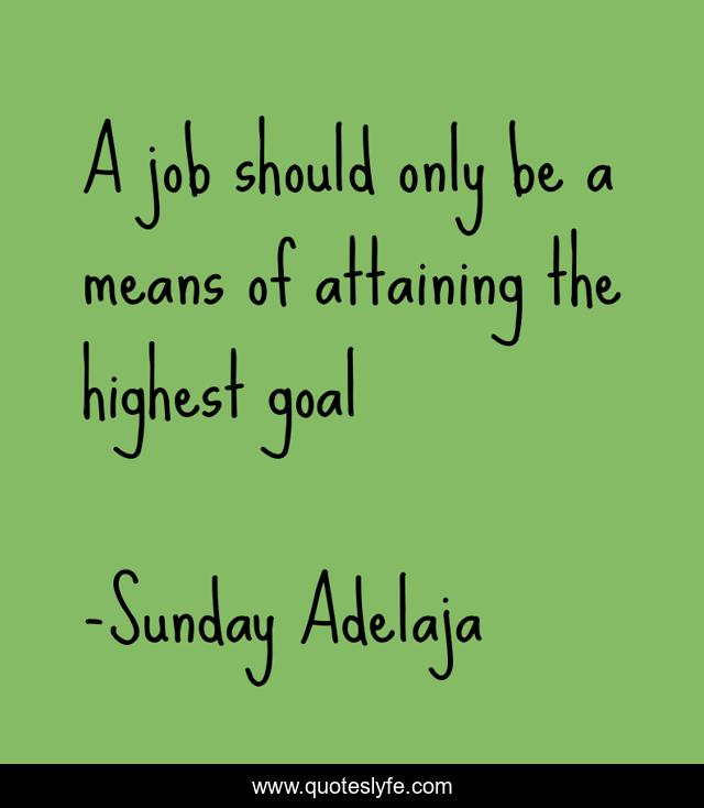 This page presents the quote "A job should only be a means of attaining the highest goal". Author of this quote is Sunday Adelaja. This quote is about job, highest, attaining, goal, means,.
