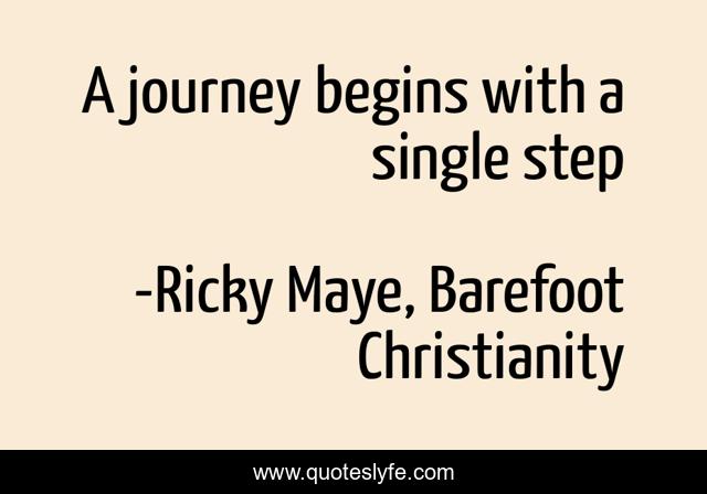 "Ricky Maye, Barefoot Christianity Quotes." Quoteslyfe.com, 2025. Mon. 15 Dec. 2025. <https://www.quoteslyfe.com/quote/A-journey-begins-with-a-single-step-105813>.