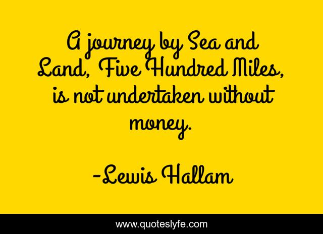This page presents the quote "A journey by Sea and Land, Five Hundred Miles, is not undertaken without money.". Author of this quote is Lewis Hallam. This quote is about money, journey, sea,.