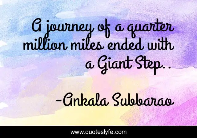 This page presents the quote "A journey of a quarter million miles ended with a Giant Step..". Author of this quote is Ankala Subbarao. This quote is about journey, moon,.