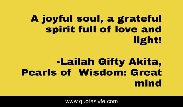 "Lailah Gifty Akita, Pearls of Wisdom: Great mind Quotes." Quoteslyfe.com, 2025. Tue. 09 Dec. 2025. <https://www.quoteslyfe.com/quote/A-joyful-soul-a-grateful-spirit-full-98703>.