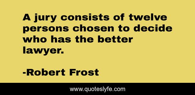 This page presents the quote "A jury consists of twelve persons chosen to decide who has the better lawyer.". Author of this quote is Robert Frost. This quote is about law, lawyers,.