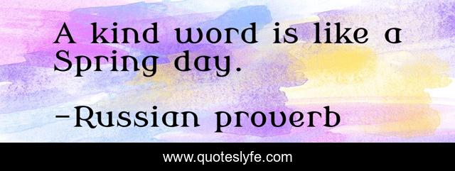 "Russian proverb Quotes." Quoteslyfe.com, 2025. Fri. 05 Dec. 2025. <https://www.quoteslyfe.com/quote/A-kind-word-is-like-a-Spring-267978>.