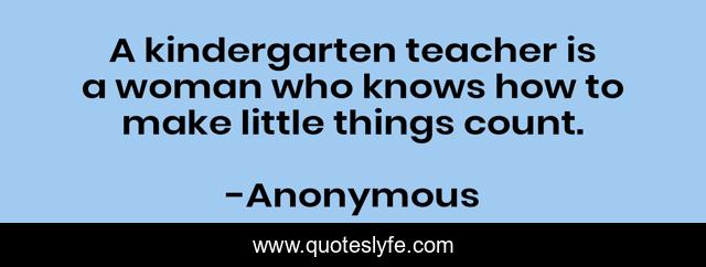 This page presents the quote "A kindergarten teacher is a woman who knows how to make little things count.". Author of this quote is Anonymous. .