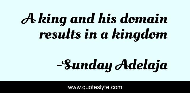 This page presents the quote "A king and his domain results in a kingdom". Author of this quote is Sunday Adelaja. This quote is about kingdom, king, domain,.