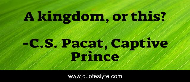 This page presents the quote "A kingdom, or this?". Author of this quote is C.S. Pacat, Captive Prince. This quote is about kingdom, king, laurent, vere, captive-prince-trilogy, damen, akielos,.