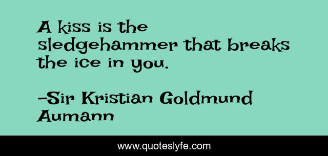 This page presents the quote "A kiss is the sledgehammer that breaks the ice in you.". Author of this quote is Sir Kristian Goldmund Aumann. This quote is about love, kiss, affection,.