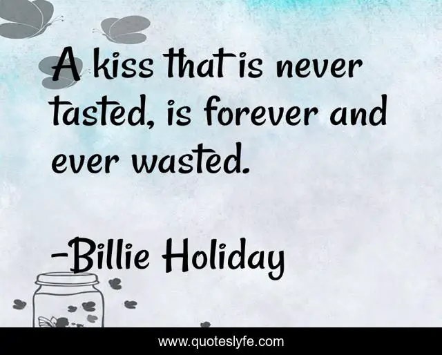 This page presents the quote "A kiss that is never tasted, is forever and ever wasted.". Author of this quote is Billie Holiday. This quote is about forever, kiss,.