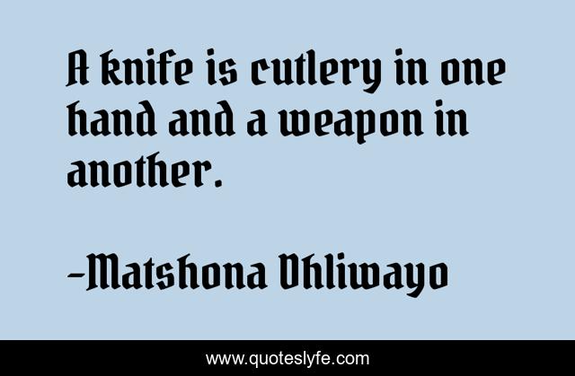 "Matshona Dhliwayo Quotes." Quoteslyfe.com, 2025. Sat. 06 Dec. 2025. <https://www.quoteslyfe.com/quote/A-knife-is-cutlery-in-one-hand-207586>.
