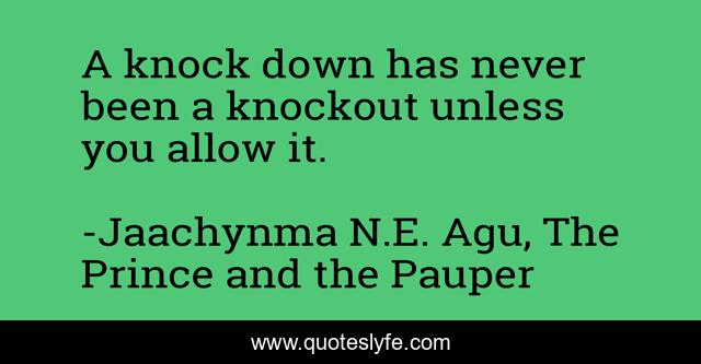"Jaachynma N.E. Agu, The Prince and the Pauper Quotes." Quoteslyfe.com, 2025. Sat. 06 Dec. 2025. <https://www.quoteslyfe.com/quote/A-knock-down-has-never-been-a-32235>.