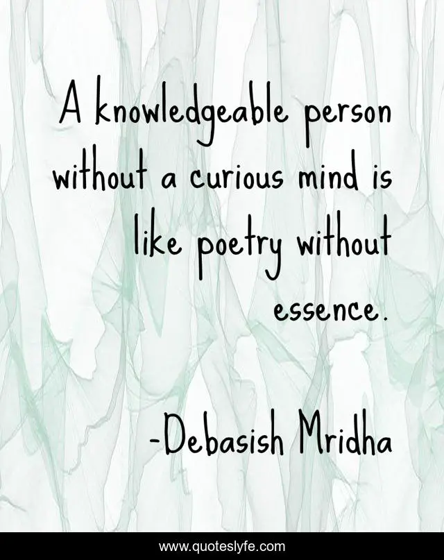This page presents the quote "A knowledgeable person without a curious mind is like poetry without essence.". Author of this quote is Debasish Mridha. This quote is about miraboli, oscar-wilde, philosophy, debasish-mridha, poetry, a-knowledgeable-person, debasish-mridha-md, quotes, gandhi,.