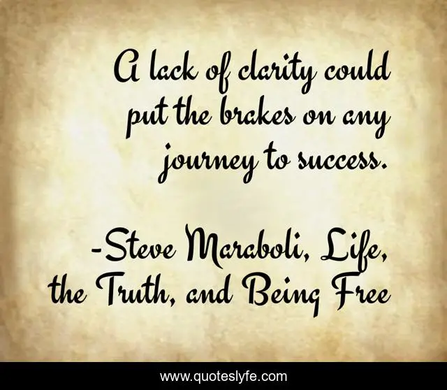 This page presents the quote "A lack of clarity could put the brakes on any journey to success.". Author of this quote is Steve Maraboli, Life, the Truth, and Being Free. This quote is about life, success, positive, motivational, confidence, journey, optimistic, inspirational, enthusiasm,.