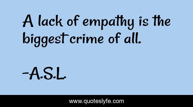 This page presents the quote "A lack of empathy is the biggest crime of all.". Author of this quote is A.S.L.. This quote is about be-kind-to-all, respect, humility, humanity, spirituality,.