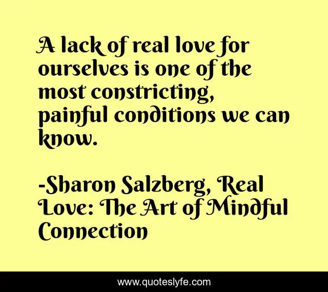 This page presents the quote "A lack of real love for ourselves is one of the most constricting, painful conditions we can know.". Author of this quote is Sharon Salzberg, Real Love: The Art of Mindful Connection. This quote is about motivation, love, affection,.