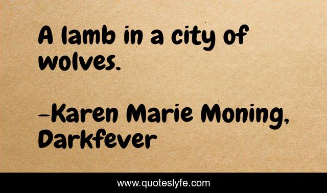 This page presents the quote "A lamb in a city of wolves.". Author of this quote is Karen Marie Moning, Darkfever. .