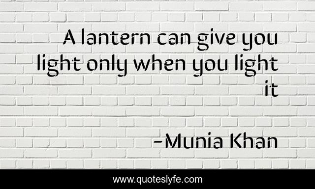 This page presents the quote "A lantern can give you light only when you light it". Author of this quote is Munia Khan. This quote is about wise-words, give, light, one-liner, wisdom, only, light-and-darkness, lantern,.