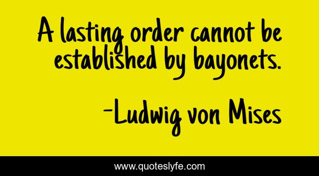 This page presents the quote "A lasting order cannot be established by bayonets.". Author of this quote is Ludwig von Mises. This quote is about established, order, lasting,.