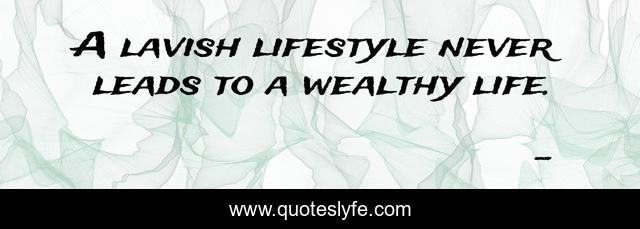 This page presents the quote "A lavish lifestyle never leads to a wealthy life.". Author of this quote is . This quote is about attaining-wealth, a-wealthy-life, living-lavishly, edmond-mbiaka, bad-spending-habits, living-a-labish-lifestyle,.