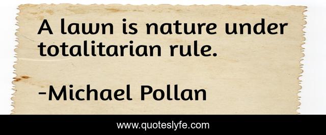 This page presents the quote "A lawn is nature under totalitarian rule.". Author of this quote is Michael Pollan. This quote is about lawn, gardening, rule,.